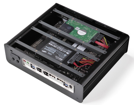 The easy ability to add or change the extra 2.5" disks makes the product ideally suited as a business or home server.